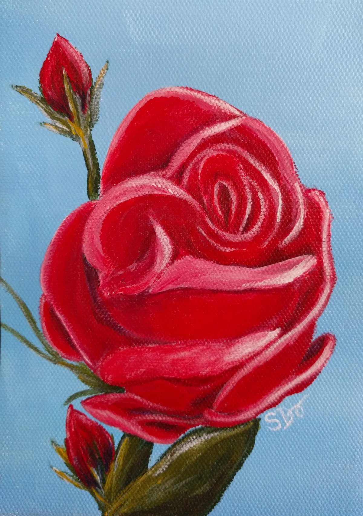 “Red Rose” – Acrylic on 5″x7″ Canvas Sheet